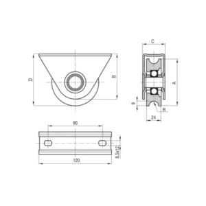 - Ruedas con soporte sobreponer canal U. Zincadas